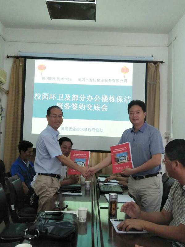 为加强校园环境卫生及楼宇保洁规范化管理,提升保洁服务质量,6月20日上午10:00,后勤处召开了校园环卫保洁托管服务履约交底会。黄冈市百佳物业服务有限公司总经理瞿全胜、项目经理张新元及环卫职工代表,后勤处党总支书记张世勇、处长高厚荣、副处长王芬香及相关工作人员参加了本次交底会。会议由王芬香主持。