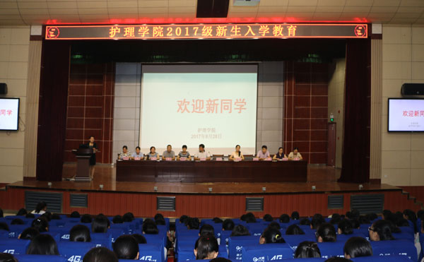 良好的开端是成功的一半,为帮助2017级中专新生了解学校、认识专业,掀开生活学习新篇章,护理学院于8月28日在学术报告厅举行了2017级中专新生入学教育。护理学院领导班子、专业主任、相关辅导员以及全体中专新生参加教育大会。大会由护理学院副院长饶凤英主持。