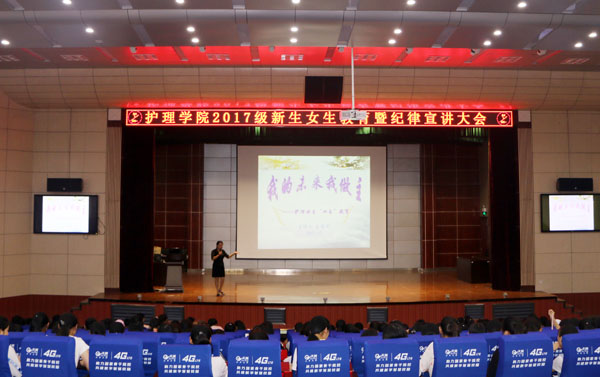 为全面提高学生素质,加强学生常规管理,培养学生良好的文明行为习惯,进一步增强学生的纪律意识,护理学院结合学院学生性别特点,于8月28日下午在学术报告厅举行了2017级新生女生教育暨纪律宣讲大会。护理学院党总支书记王莹华、副院长夏瑾燕担任主讲。