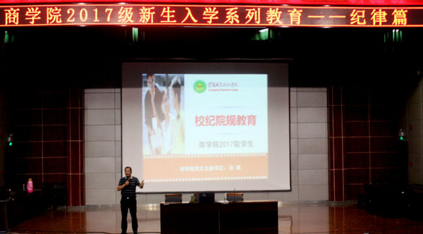 入学教育是新生踏上求学新征程的“第一课”,为帮助商学院2017级新生尽快适应大学生活,增强对学校、学院、专业和未来职业的认同感,9月7日至9日,商学院开展了以“思想政治、专业、职业、人生”为主题的新生入学教育系列活动,为2017级新生推出了一套“豪华”套餐。