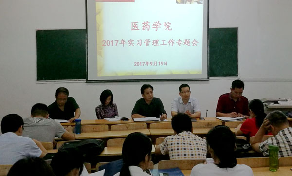 9月19日中午12点30分,医药学院在东7平房102教室组织召开了实习管理工作专题会,全体院领导、实习基地负责老师、实习班级辅导员近30人参加了会议,院长张辛主持了会议。