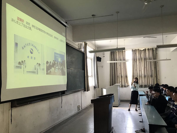 10月26日下午,应学校就业处邀请,电子信息学院优秀毕业生可仕静在育贤阁204教室作了一场生动的创业报告,电子信息学院及建筑学院16级学生参加了报告会。会议由就业处陈国清副处长主持。