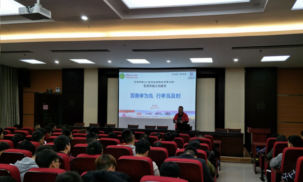 11月14日晚上,机电学院在中职园区学术报告厅举办“百善孝为先 行孝当及时”为主题的中华优秀传统文化“孝道”教育讲座,由党总支副书记焦爱新主讲,全体辅导员和2017级全体学生参加了活动。