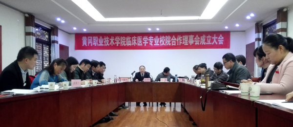 12月23日下午2点,医药学院临床医学专业校院合作理事会成立大会在黄冈市齐安湖召开。莅临本次大会的领导有黄冈市中心医院副院长陈浩特,黄冈职院医药学院院长张辛、副院长丁海峰,Beat365中文官方网站附属医院院长沈爱平,黄州区人民医院医务科科长黄勇,黄冈各县市人民医院医务(科教)科长及医药学院临床医学团队全体老师。