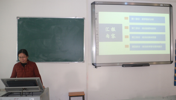 接到学校举办“教师说教改”大赛通知后,公共课部领导迅速研究部署,起草下发《公共课部关于举办教师说教改大赛初赛的通知》到各个团队。各教学团队组织所有老师参加初赛,负责联系团队的部领导参与初赛中。通过初赛,最终选拔推荐出10名教师参加公共课部层面的比赛。在本次比赛过程中,教师们针对课程教学现状,剖析出存在的主要问题。从课程目标与标准、教学内容与安排、教学模式与方法、教学设计与策略、课程考核与评价等方面确定所授课程的改革目标。通过实践提出了切实可行的改革举措。最终,评选出付景芳、肖燕等选手,他们将代表公共课部参加学校组织的决赛。