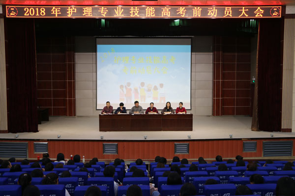 技能高考考试在即,为取得更好的成绩,护理学院于 2018年3月30日下午4:00,在学术报告厅召开技能高考动员大会,鼓舞士气,助推技能高考。会议由党总支副书记张朋生主持。