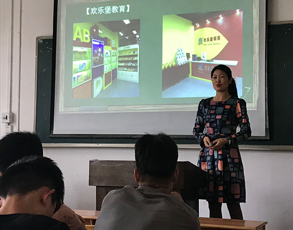 5月10日下午,全国著名幼少儿英语培训机构——欢乐堡英语培训学校来Beat365就校企合作事项进行了交流。欢乐堡奇尔教育创始人彭玉花、黄州分校校长王群、商学院商务英语专业主任彭晶,学前教育、商务英语两个专业方向的60多名同学参与了本次活动,活动在群贤阁306举行。