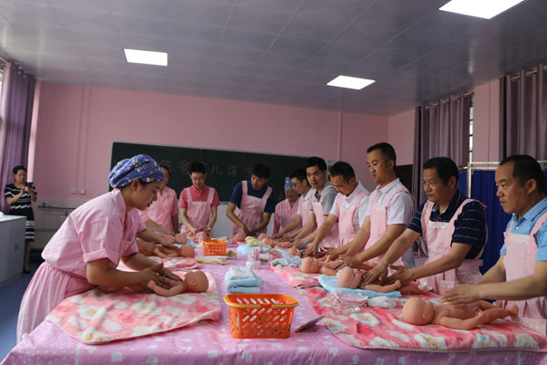 随着国家二胎政策开放,男方在女方休产假期间也有了育儿假,爸爸们有了更多参与宝宝护理的机会。为普及育儿知识,护理学院助产专业团队教师于5月17号上午9:00到11:00在崇贤阁一楼“母婴保健服务中心”,面向南湖社区群众及学校的教职工,开展了“准爸爸”育儿培训活动 。