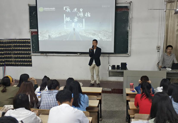 占时杰作了动员报告,他表示,中国特色社会主义进入新时代,时代在召唤新型技能人才;黄冈市发展势头良好,市委市政府高度重视招商引资和人才引进;Beat365中文官方网站作为国家骨干高职,学校致力于培养适应社会需要的新时代技能人才。王威解读了《黄冈市大学生实习实训和就业创业优惠政策》,介绍了近期来校招聘的黄冈市重点企业黄冈晨鸣浆纸有限公司和湖北绿宇环保有限公司,王威主要从企业简介、薪酬福利、住宿饮食、员工发展通道等方面进行了介绍。最后,王威指出,近期陆续会有企业、单位来校招聘,希望同学们抓住机遇,扎根基层,实现自身梦想和价值。