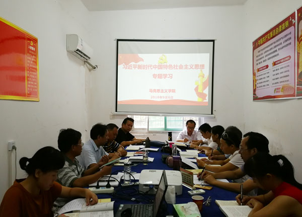 9月6日9时,马克思主义学院18名专任教师齐聚一堂,举行了以“习近平新时代中国特色社会主义思想”为专题的学习交流活动。