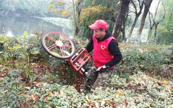 在近两个小时的活动中,青年志愿者们整理了公园内近百辆共享单车,清扫了3公里的路边草坪。他们冒雨进出草丛,哪怕衣服都被打湿,都没有人埋怨,反而把不怕苦、不怕累、不怕脏的精神表现得淋漓尽致。