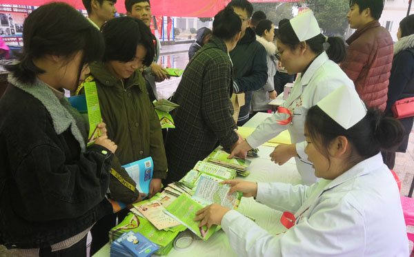 12月1日是世界艾滋病日,为普及艾滋病相关知识,由工会、学工处、团委主办,护理学院承办,青春同伴社、护理协会及康复协会协办的主题为“知性智行——为青春健康点亮一盏安全的明灯”艾滋病相关知识宣传活动在中区主干道、西苑餐厅广场顺利开展。