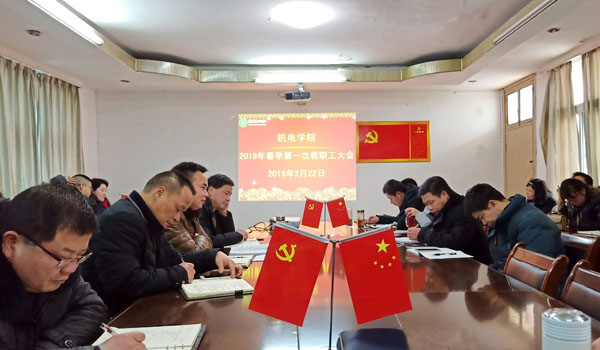 2月22日下午,机电学院2019年春季第一次教职工大会在二楼会议室召开。副校长刘东山,学院班子成员、全体教职工参加了大会。大会由党总支书记杨勇主持。