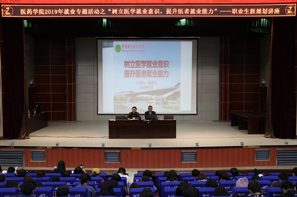 4月1日晚18:10,医药学院在学术报告厅开展“树立医学就业意识,提升医者就业能力”职业规划讲座,讲座由医药学院党总支副书记陈胜红主讲。医药学院专兼职辅导员,2017级近700名学生聆听了本次讲座。