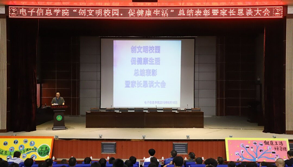 2019年6月15日,电子信息学院于学术报告厅举办“创文明校园,促健康生活”系列活动总结表彰暨家长恳谈会。校党委委员、工会主席、宣传部部长郑柏松,学生工作部(处)部(处)长熊楚舒,电子信息学院党总支书记罗幼平,党总支副书记程朗,全体专兼职辅导员以及32位家长朋友和全院在校学生参加了此次活动。本次活动由程朗主持。