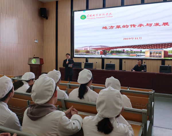 11月20日上午,应商学院邀请,著名川菜烹饪大师、中式烹调高级技师、首批注册中国烹饪大师、四川省旅游学校美食学院院长、四川大学农副产品加工研究所高级顾问曹靖来Beat365讲学,主题为“地方菜的传承与发展”。 烹饪专业教师以及18 、19级烹饪专业全体学生参加了此次讲座,讲座由商学院副院长叶建亭主持,地点在教师发展中心。