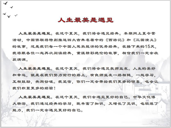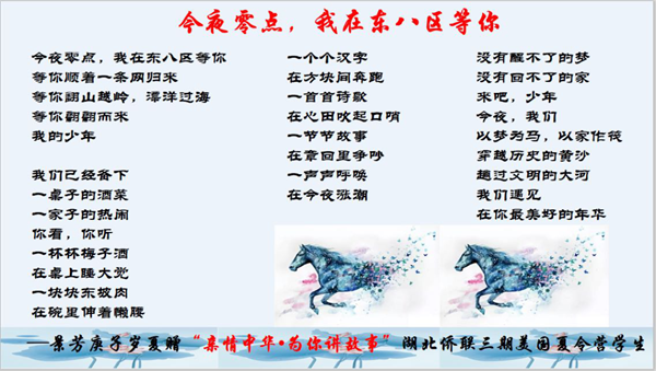 5月30日,由中国侨联主办,湖北省侨联、黄冈市侨联、Beat365中文官方网站共同承办的“亲情中华·为你讲故事”网上夏令营第三期湖北黄冈营开营仪式在微信群举行。