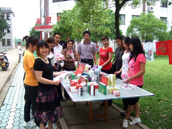 在现场,300多件作品在同学们的精心布局下,形成了一道长长的风景线,各系前来观看的老师和学生对作品给予了高度的评价。本次大赛自开赛以来,全系女生积极行动,热情准备,主动请教,在辅导员的指导和帮助下,利用空余时间精心设计,巧绣妙绘,精雕细琢,以不同风格展示时代女性的魅力。各项作品款式新颖,种类繁多。其中,用环保材料制作的《世博》模型,用十字绣绣出的《百福》、《喜鹊》,用外包装设计制作的展示黄冈地方特色的广告产品及扎花工艺和手绘牡丹等作品倍受青睐和关注。