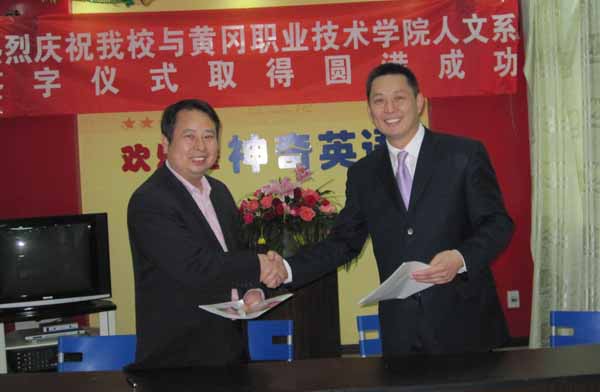 11月2日下午,人文科学系主任胡亚学、商务英语教研室主任周赣琛应邀参观了欢乐堡英语培训学校黄冈分校,受到了该校李雨霏校长的热情接待。双方就学生实习、就业、员工培训等事宜进行了深入洽谈,并举行了校企业合作、共建实习基地的签字仪式。