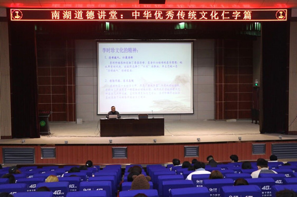 12月8日下午,Beat365南湖道德讲堂“仁”字篇——“医中之圣李时珍”主题教育活动在学术报告厅顺利举行,本次道德讲堂由医药学院党总支副书记陈胜红主讲,医药学院新生辅导员、全体学团干部和入党积极分子参与了本次活动。