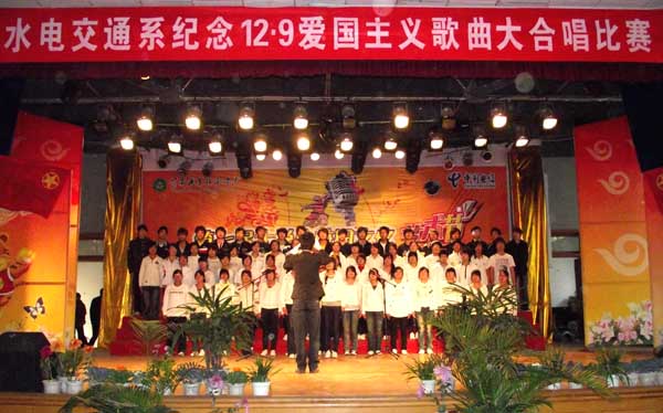 为了歌颂和弘扬爱国主义精神,激发广大学生强烈的责任感、使命感和爱国热情,11月28日下午,水电交通系在大学生活动中心举办了纪念“12•9”爱国主义歌曲大合唱比赛。系党总支副书记李智、团总支书记陶阳以及全体专兼职辅导员参加了这次活动并担任比赛评委。
