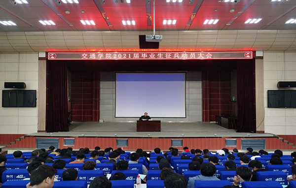 3月12日,交通学院在学术报告厅召开2021届毕业生征兵动员大会。学生工作部(处)劳动实践科科长朱卫东应邀担任主讲。交通学院2018级辅导员及2018级全体学生参会,会议由团总支负责人费新宝主持。
