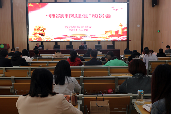4月28日上午,医药学院在教师发展中心2号厅召开了师德师风建设动员会。医药学院全体教职工参加了会议,会议由院长丁海峰主持。