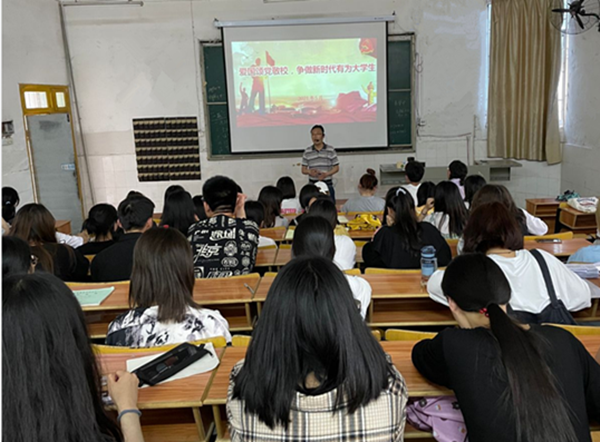 5月14日下午,商学院学工党支部在群贤阁107教室组织开展了“爱国颂党敬校,争做新时代有为大学生”专题讲座,商学院、教育学院2019级、2020级入党积极分子参加,商学院党总支副书记刘洋主讲。