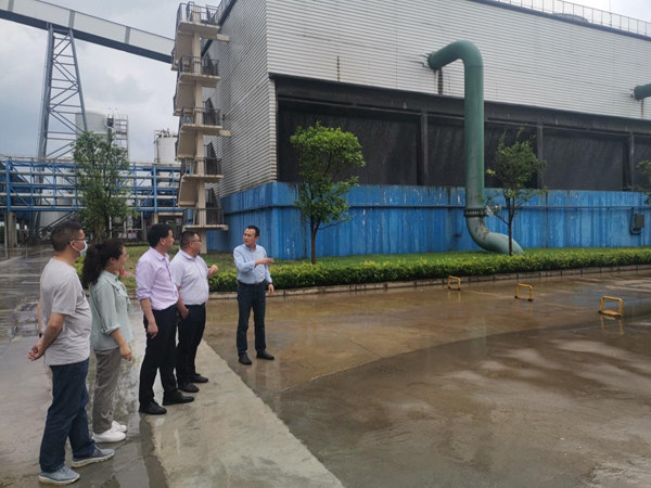 杨勇与教师代表在黄冈晨鸣浆纸有限公司实地调研