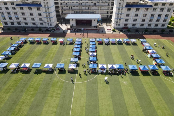 本次学生社团纳新活动在区域划分、展位布局方面做出了调整和创新,整体形状呈“吕”字型,现场整齐划一。
