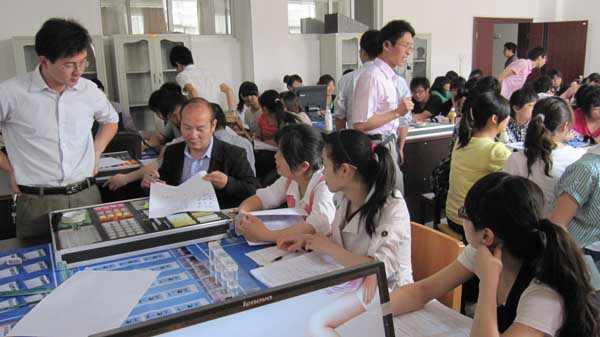 培训教学中,张西平等重点传授了沙盘使用和授课方法。带领60余名师生分成多个小组进行实战演练,每个小组模拟5个不同岗位角色,组建若干个工程项目管理团队(项目部),通过模拟人力、材料、机械、资金、业务流程和现场,自己决策完成工程进度和工程费用计划,自己动手编制项目资金筹措计划和调节资金的平衡,从而完成模拟工程的施工项目管理过程,形成不同的项目结果,体验施工企业项目管理的过程,挖掘工程施工管理的本质,在专门的沙盘分析软件协助下,老师通过对学生实践活动过程的引导和点评,强化学生对知识的理解与应用,提升学生在项目管理方面的综合素质。