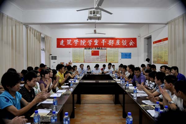 为了加强在校、院学生社团的学生干部自身素质建设,5月20日晚7时,建筑学院学生干部在院办二楼会议室举行了学生干部工作交流座谈会。会议由辅导员林迁老师主持,党总支副书记黄正东、专兼职辅导员共计6人出席会议,来自校学生会、校团委、校护校队、校巡逻队;院学生会、院团总支、院党小组等社团组织的82名学生干部参加了此次交流会议。