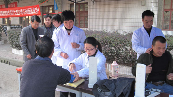随着康复医学的发展,人们的健康意识和自我保健意识逐步加强,为了促进教职工身体健康,解决职工职业病、退行性疾病所带来的身体不适,应本校广大教职工强烈要求, 2011年11月23日,在Beat365中文官方网站附属医院南湖校区医院(原医疗中心)门口,我院组织以康复科陈洲主任医师、骨伤科董超主任医师、推拿科付俊岭主任医师、针灸科李艳生主任医师为骨干的专家教授进行了康复医疗大型义诊活动。