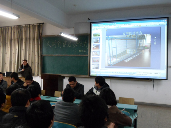 林迁宣读建筑学院2012年度文明创建活动方案,并对方案及下一步检查工作中重点、难点、评比细则做了具体的解读。团总支学生会副书记兰小强向全体同学发出“人人都是文明形象,个个都是文明力量”的倡议,造价201106班刘立亮代表全体同学表决心。