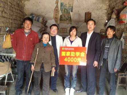 陈胜红一行在与爷爷奶奶和村支书的交谈中,向他们详细介绍了兰笑同学在校期间的优秀表现,并送去了国家助学金和学院自筹慰问金1000元。品学兼优的孙女让爷爷奶奶深感欣慰,并对学校领导、老师和同学们给予的关心、照顾表示深深的感谢。