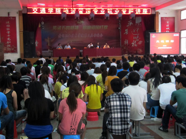 2012年5月7日下午,交通学院物流管理专业就业讲座在大学生活动中心隆重举行。零售物流专家、海航集团家得利连锁超市总裁、厦门大学、上海交大客座教授陈静阳先生,海航集团家得利连锁超市副总裁兼人力资源总监汪晓峰先生主讲。交通学院党总支书记钟彬杉,物流系主任王江,校就业指导中心王锦华、肖素芳老师,交通学院物流管理教学团队所有老师聆听了讲座。讲座由交通学院党总支副书记黄忠主持。