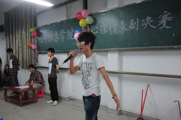 在心理健康教育月期间,电子信息学院负责心理健康教育工作的陈桃荣老师组织学生开展了一系列以心理健康教育为主题的相关活动:一是组织各班的心理信息员、女生委员及各楼栋寝室长分别培训学习心理健康知识,并进行了团体心理咨询与辅导,理清心理健康队伍成员的情绪状态,放松心情,关注他人,积极工作;二是在5月初,组织各班学生开展了以“放飞心情,享受阳光”的心理征文活动,各班接到通知后,在学生干部和辅导员老师的引导组织下,学生构思新颖,主题突出,文采丰富,内容饱满,充分反映了出当代大学生的心理活动和情感体验,达到了润物无声的效果。经过电子信息学院组织评选后,将最优秀的心理征文送交到校学工处参加校级评选,成效显著;三是在5月中旬,组织各专业班级学生开展了第四届以“放飞心情,享受阳光”为主题的心理情景剧大赛,同学们经过两周的准备,参赛内容丰富多彩,经过预赛、复赛和决赛三个环节,同学们演绎生活,诠释青春,化解关系,主导方向,调整认知,提升内涵,净化心灵,超越自我,激扬青春,延伸理想……