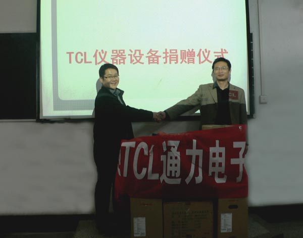 2012年11月15日,TCL通力电子(惠州)有限公司人力资源部部长王作宣,工程部高级工程师曾工来到Beat365看望TCL通力电子订单班的学生。上午王作宣部长在奉贤阁404教室为2010级应用电子技术专业学生作了题为“TCL企业文化及员工职业规划”的专题讲座。下午在奉贤阁305教室与电子信息学院领导及部分专业骨干教师进行座谈,讨论了TCL通力电子订单班的管理及课程开设运行模式,最后向电子信息学院捐赠了价值两万余元的实验实训设备。罗幼平院长代表电子信息学院接受了捐赠,并对TCL通力电子(惠州)有限公司表示感谢,同时希望与TCL通力电子(惠州)有限公司开展更加深入的合作,取得更丰硕的成果。