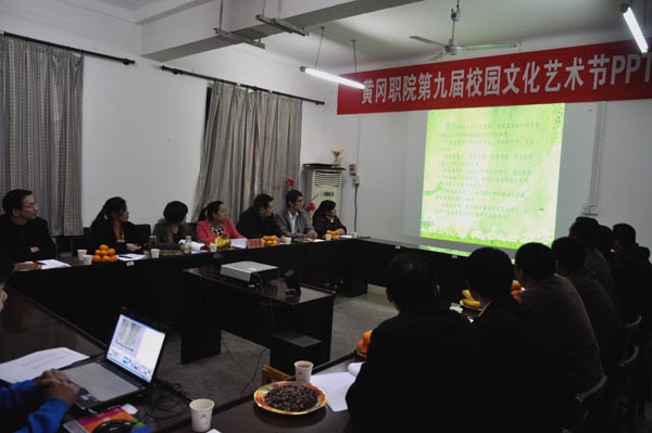 11月13日晚6:20,由校团委主办,电子信息学院承办的第九届校园文化艺术节PPT设计大赛决赛在电子信息学院会议室隆重举行。校学工处处长、团委书记叶华光,校团委社团科科长张爱东,电子信息学院党总支副书记陈胜红,各教学学院团总支书记出席了本次比赛,决赛评委由叶华光处长和电子信息学院部分专业负责人担任。