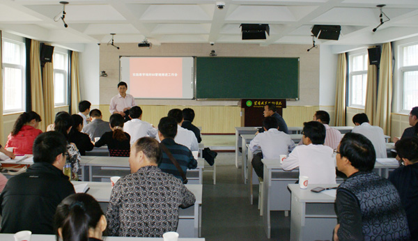 2013年4月18日上午8:00,在学校视录室,副校长熊发涯组织召开了实验实训室8S管理推进会,参加会议的人员有副校长熊发涯、教务处副处长方玮和叶建亭、各教学学院副院长、实训中心主任、部分实训中心管理员。推进会由教务处副处长方玮主持。