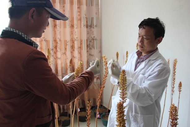 程喜荣一行首先参观了无性繁殖场、有性繁殖场、菌种培养室等,参观过程中,专业老师就技术问题进行了具体的指导;随后,胡洪涛和熊雄向老师们汇报了他们创业念头的萌发,创业过程中遇到的困难和得到的帮助,以及创业的体会;最后,他们还兴奋地展望了他们的发展规划,计划下一步将两个区统一规划,英山区以麻种的繁殖为主,麻城区以发展室外种植,生产商品麻为主,并准备成立合作社,形成制种、生产、加工一条龙,还将进行茯苓的种植,为麻城、英山两地的农村经济发展贡献力量。听完汇报后,程喜荣副书记代表学院对他们创业成绩给予了高度的评价和充分的肯定,表示一定要把他们的事迹带回学校,教育学弟学妹,并承诺学院一定给予技术上的支持;陈科长传送了关于大学生创业,特别是回乡创业的相关信息,也表示要竭尽所能的为他们创业发展提供信息服务。
