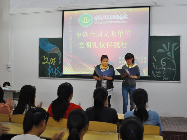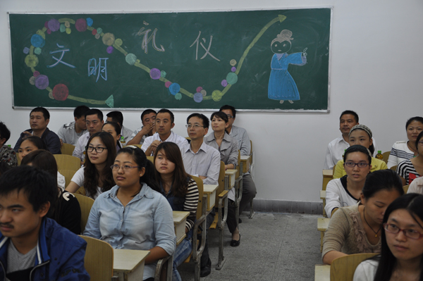 2013年9月26日下午,商学院各班级开展了以“文明礼仪伴我行”为主题的团日活动。校团委书记、学工处处长叶华光,团委副书记、学工处副处长陈胜红,宣传部宣传科副科长李芬和各学院党总支副书记、团总支副书记以及辅导员代表参加了会计201207班、201208班主题团日活动。