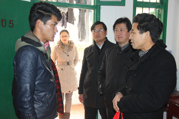 12月24日中午,副校长段院生带领生物化工学院党总支书记余亮彬、院长陈全胜、副书记程喜荣、学工处资助管理中心杨晨程等一行深入学生宿舍,看望贫困生并送上关心与祝福。