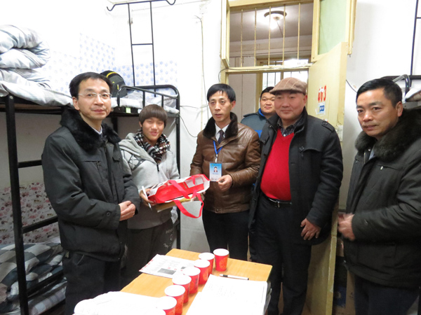 在21栋403、415学生宿舍里,郑柏松与同学们进行了亲切的交谈,热情地询问了同学们的学习、生活状况。并对同学们在日常生活中遇到的困难与问题给予了细致周到的解答。随后将保暖内衣分别送至2013级贫困学生姜沙、凌剑峰手中,嘱托他们要以积极乐观的心态面对生活中的困难,发扬艰苦奋斗的精神,努力学习专业知识,立志成才,报效祖国。