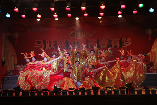 晚会在老师美妙的民歌串烧中接近尾声,在16位老师精彩别致,高雅大气的舞蹈《大地飞歌》中落下帷幕。