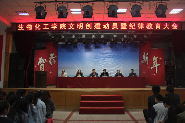 为进一步落实学校全国文明单位创建工作,4月13日,生物化工学院在大学生活动中心召开了全国文明单位创建工作动员及纪律教育大会。生物化工学院党总支书记余亮彬、院长陈全胜、党总支副书记程喜荣及全体专兼职辅导员和全体在校学生参加了本次会议。院长陈全胜主持会议,总支书记余亮彬作动员报告。