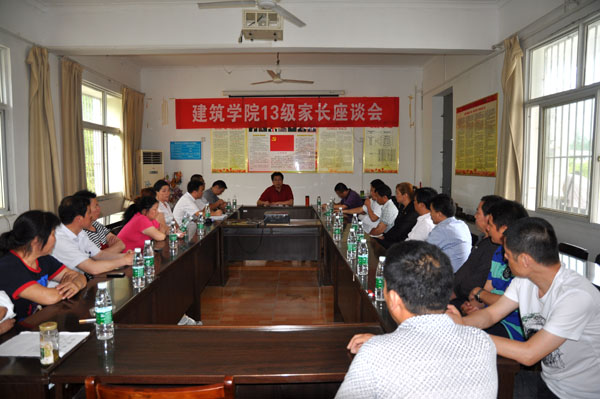 5月23日下午3点,建筑学院在培智楼二楼会议室召开了2012和2013级学生家长代表座谈会。出席座谈会的领导老师有校团委书记、学工处副处长杨勇,学工处学生管理科副科长吴冬,建筑学院党总支书记朱建军、副书记刘国峰以及建筑学院专职辅导员,会议由建筑学院团总支副书记田涛老师主持。