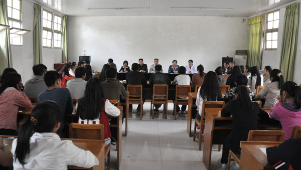 为广泛了解在学生管理、教学管理工作中存在的问题,帮助学生解决生活、学习、成长等方面所遇到的各种困难,10月21日下午,医药卫生学院在会议室召开了2014级临床医学专业学生代表座谈会。医药卫生学院党委书记熊亚芬、副书记徐火军、医药系主任曾华、团委书记张朋生、教务科科长饶凤英、团委副书记曹俊峰、临床医学教学团队的老师及临床医学专业的47名学生代表参加座谈会。会议由团委书记张朋生老师主持。