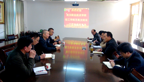 4月14日,武汉职业技术学院轻工学院院长王凯文、制冷与空调专业教研室主任吴建华一行4人来我院交流访问。机电学院院长方玮、副院长黄国祥、能源系主任兼制冷专业负责人祁小波、制冷专业教师邵志刚和韩贤贵参加了交流会。
