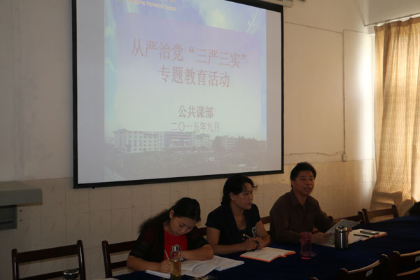 2015年9月24日上午,公共课部党总支在部会议室召开了从严治党“三严三实”专题教育推进会。部全体党员、预备党员、入党积极分子参加了会议。会议由部主任张克新主持。